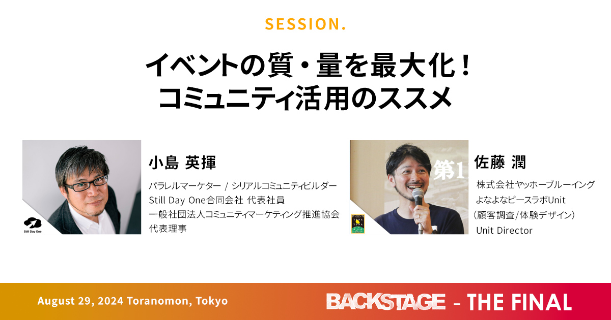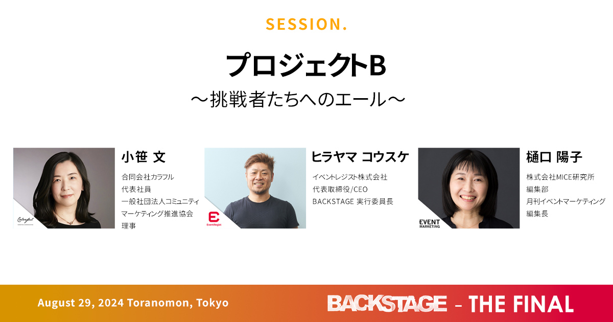 2016年に立ち上げた体験型マーケティングのカンファレンス「BACKSTAGE」。最終回のセッションでは、初開催からこれまでの舞台裏、イベントマーケティングの変遷を紐解く。